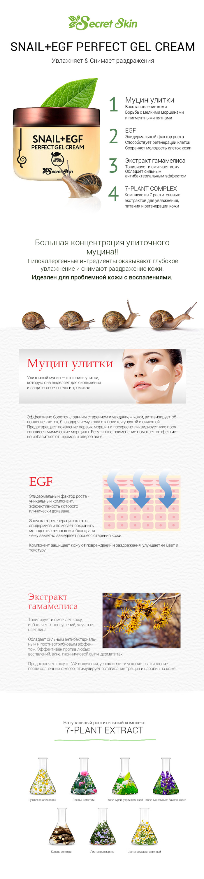 Отзывы о Крем-гель для лица с муцином улитки и EGF SECRET SKIN Snail+EGF Perfect Gel Cream
