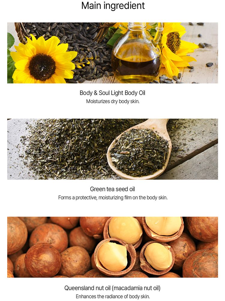 Масло для тела The Saem Body & Soul Light Body Oil состоит из 100% натуральных масел, которые не содержат отдушек, консервантов и синтетических компонентов.