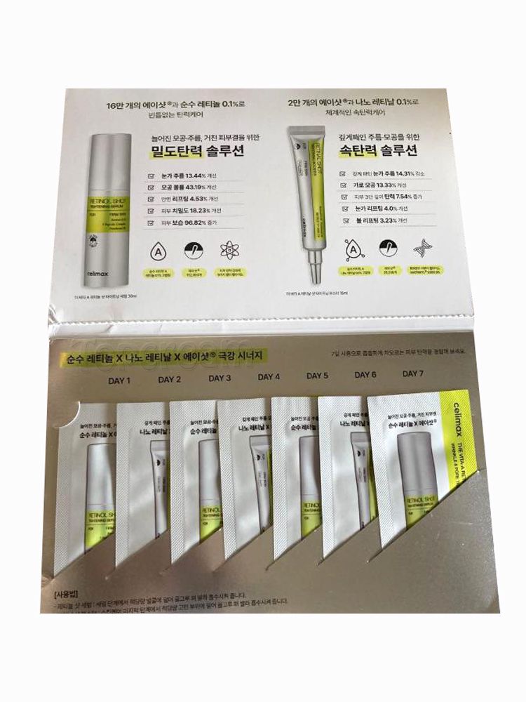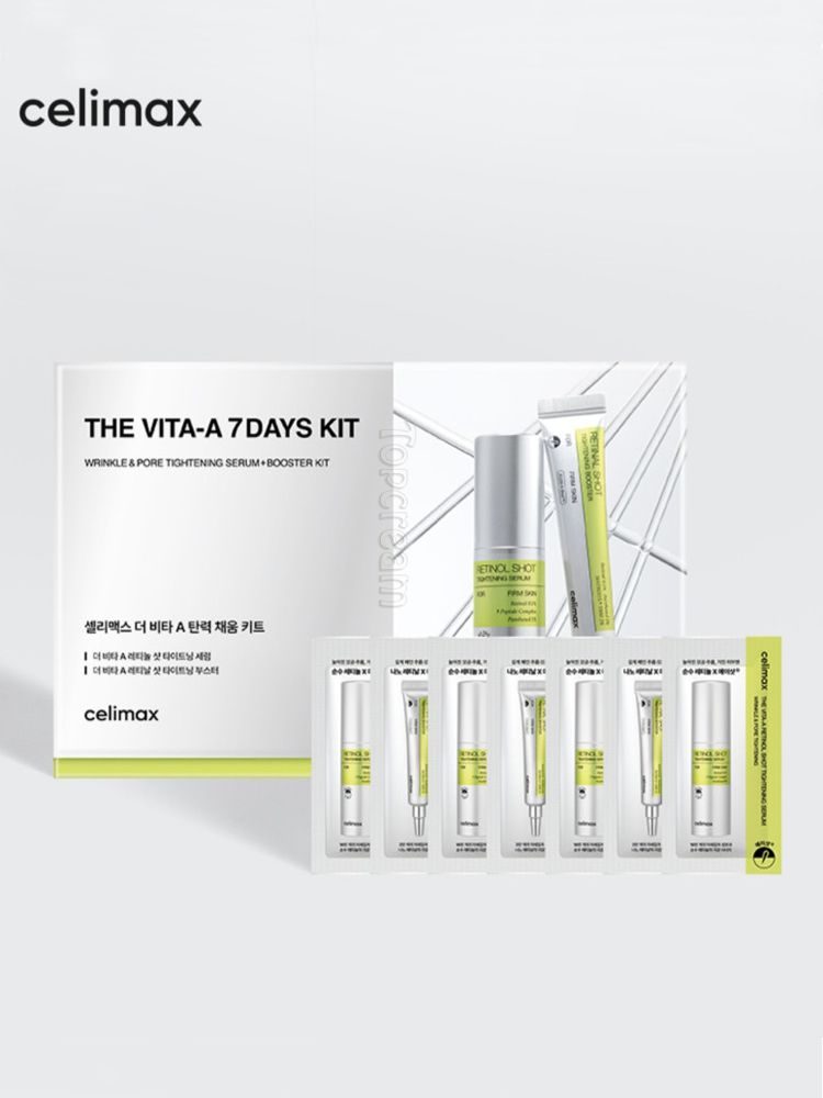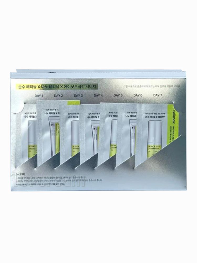 Стартовый набор пробников сыворотки и бустер-крема с ретинолом и микроиглами (спикулами) CELIMAX The Vita-A 7Days Kit предназначен для знакомства с этой серией.
