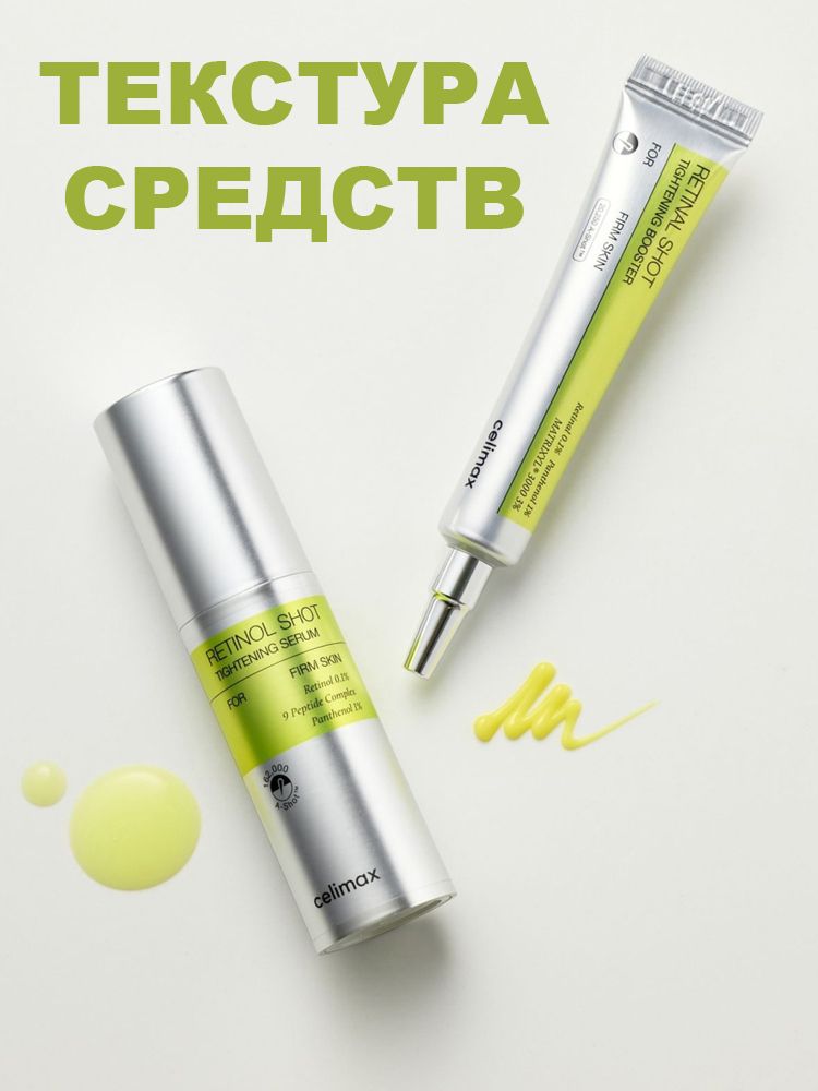 Подтягивающие сыворотка и бустер-крем с ретинолом из серии CELIMAX The Vita-A Retinol Shot Tightening - средства с насыщенной текстурой для локального применения в антивозрастном уходе.