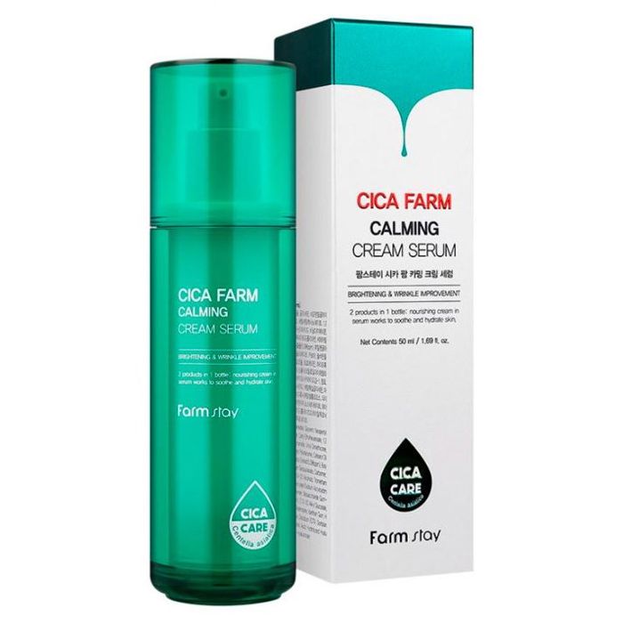 FARMSTAY Cica Farm Calming Cream Serum – это питательная, увлажняющая сыворотка, которая содержит экстракт центеллы азиатской, образующий на коже увлажняющую пленку, успокаивающую кожу и помогающую защитить кожный барьер.