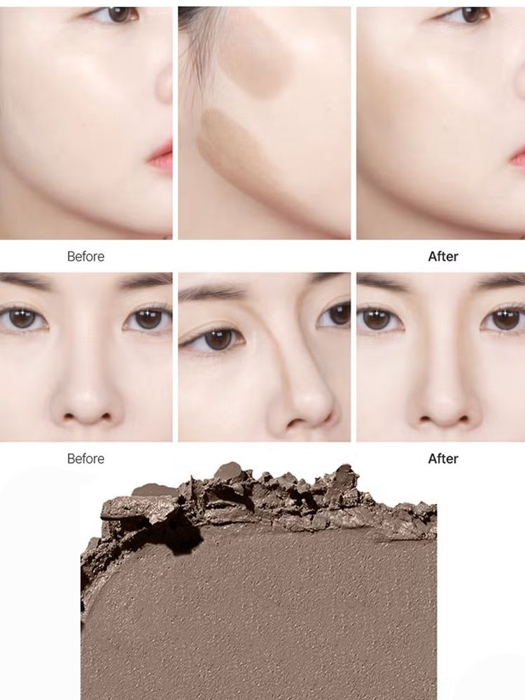 - нейтральный серо-коричневый оттенок не создаёт «грима», а имитирует естественный рельеф и при этом визуально моделирует овал лица;