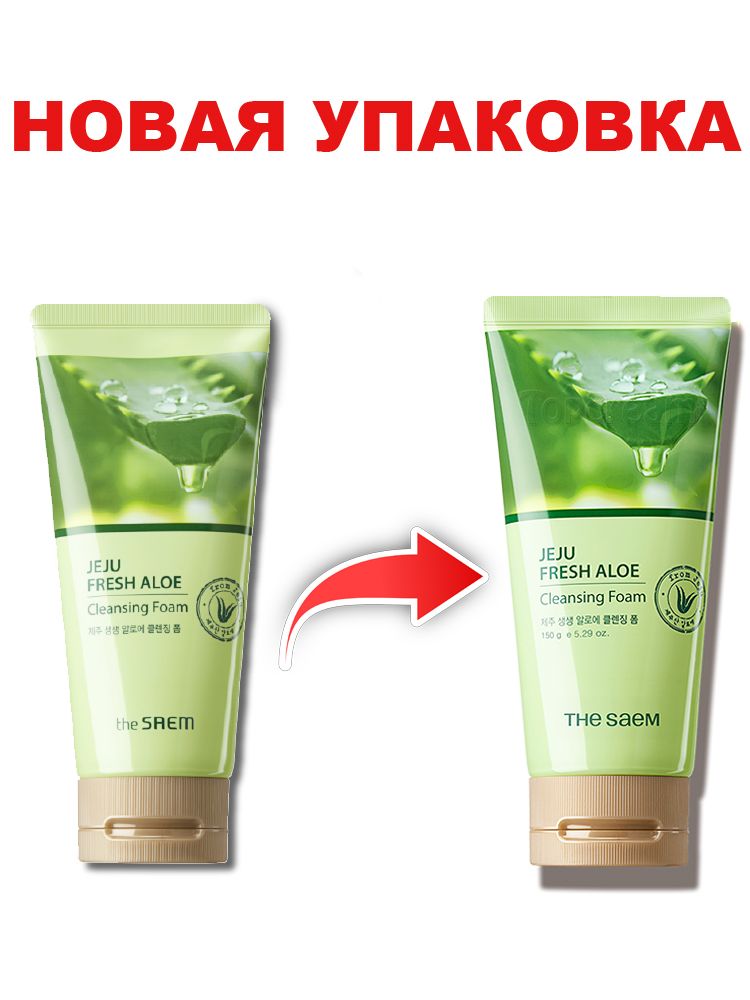 Пенка для умывания The Saem Jeju Fresh Aloe Cleansing Foam с экстрактом алоэ вера подходит для всех типов кожи: бережно очищает чувствительную, эффективно удаляет загрязнения с жирной, незаменима для сухой и увядающей, значительно улучшает состояние кожи с расширенными порами, куперозом, пигментацией.