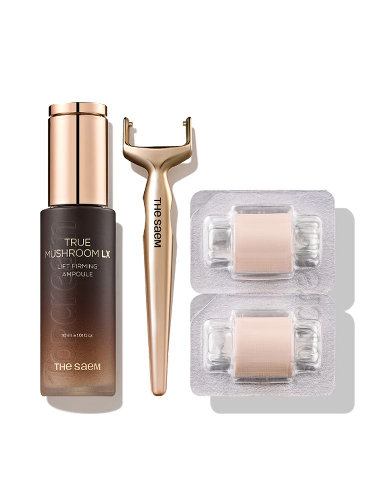 - THE SAEM True Mushroom LX Lift Firming Ampoule: Purified Water, Butylene Glycol, Glycerin, Methylpropanediol, Yeast Ferment Filtrate, 1,2-Hexanediol, Niacinamide, Propanediol, Cetyl Ethylhexanoate, Bis-Diglyceryl Polyacyladipate-2, Hydrogenated Poly(C6-14 Olefin), Propylene Glycol Dibenzoate, Trehalose, Methyl Gluceth-20, Polyglycerin-3, Polyacrylate Crosspolymer-6, Glyceryl Stearate, Cetearyl Alcohol, Palmitic Acid, Ethylhexylglycerin, Stearic Acid, Fragrance, Dipotassium Glycyrrhizate, Hydrogenated Polyisobutene, Adenosine, Reishi Mushroom Extract, Schisandra Chinensis Extract, Flower Mushroom Extract, White Mushroom Extract, Cloud Mushroom Extract, Sodium Polyacrylate, Cocoa Extract, Dextrin, Disodium EDTA, Sodium Hyaluronate, Cultured Ginseng Extracellular Vesicles, Tocopherol, Chlorella Ferment, Maltodextrin, Zea Mays Root Extract, Hydroxypropyltrimonium Hyaluronate, Hydrolyzed Hyaluronic Acid, Sodium Acetylated Hyaluronate, Sodium DNA, Hyaluronic Acid, Hydrolyzed Sodium Hyaluronate, Collagen, Sodium Hyaluronate Crosspolymer, Potassium Hyaluronate.